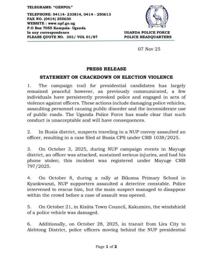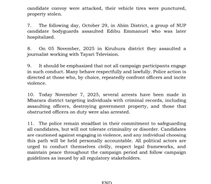 ā€œThe Uganda Police Force remains steadfast in its commitment to protecting all candidates but will not tolerate criminality or disorder. Any individual choosing this path will be held personally accountable,ā€ the statement added.