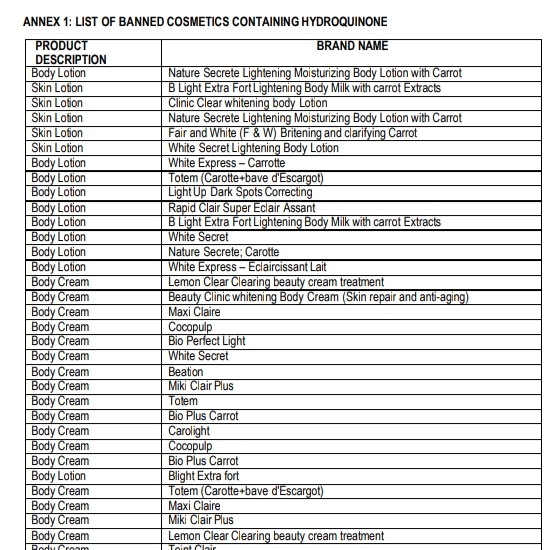 Research indicates that long-term use of Hydroquinone poses significant health risks including skin damage and increased cancer risk, which prompted UNBS to prohibit its use in cosmetic products under Uganda’s compulsory standards to ensure consumer protection.